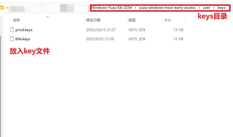 直接在yuzu目录中的keys文件夹,放入新的prod.keys即可