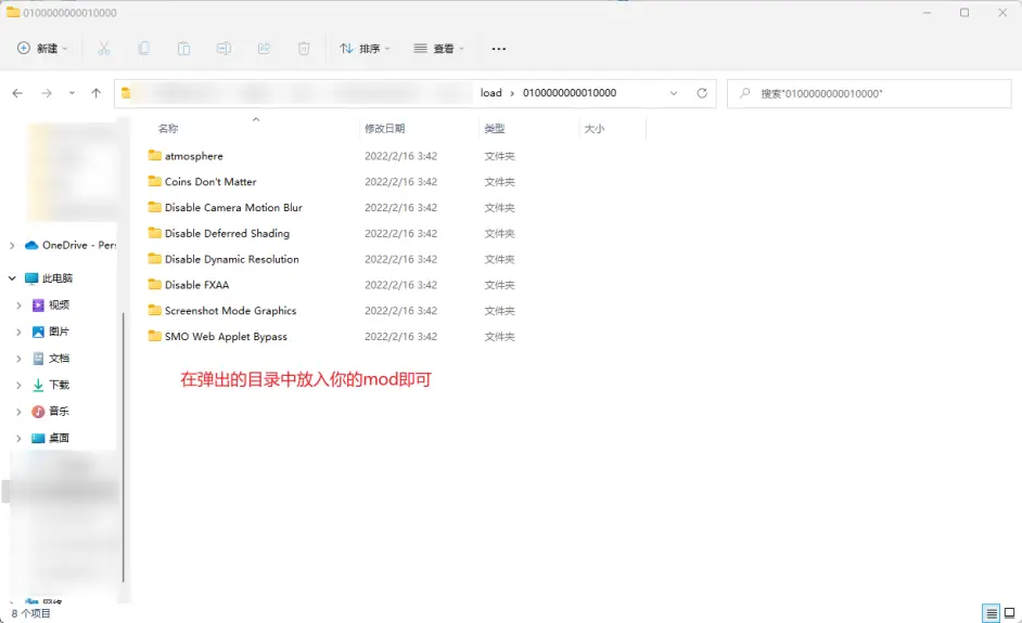 如果你放进去了mod但是这里没有显示,那么可能是因为mod的目录结构不对,mod的目录结构一般都是mod名字\exefs\***.pchtxt,例如Disable FXAA\exefs\1.0.0.pchtxt,如果你只有pchtxt文件或者,可以自己创建一个这种目录结构放进去,试试会不会生效