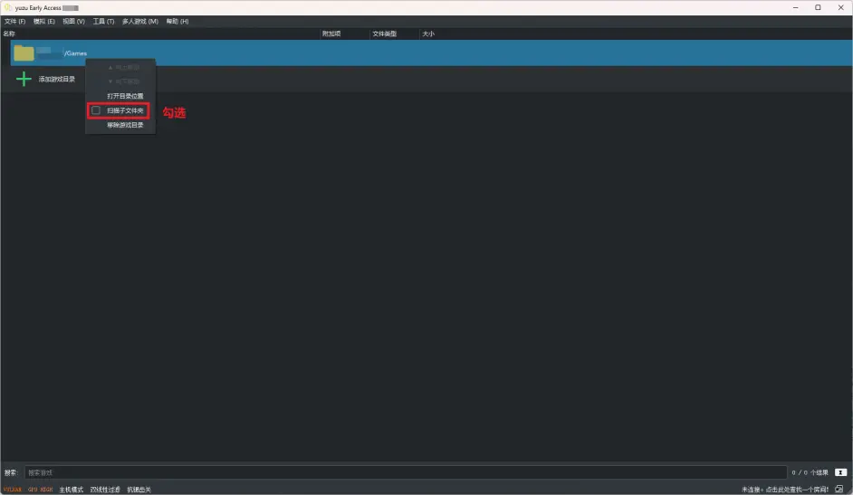 可以看到虽然有目录,但没有显示游戏