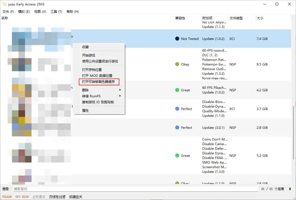 具体放入步骤:右键某个游戏,选择打开可转移着色器缓存,即可弹出缓存所在文件夹,然后放入你下载的别人的缓存就行了