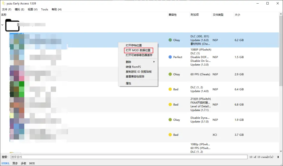 常见mod下载地址https://github.com/yuzu-emu/yuzu/wiki/Switch-Mods