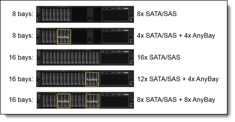 SR850可容纳16个2.5英寸驱动器托架,其中最多8个可配置为AnyBay驱动器 - 支持SAS,SATA或NVMe驱动器。NVMe驱动器是高速,低延迟存储,是存储分层的理想选择。该服务器还提供简单的扩展,最多9个PCIe插槽(其中两个是x16)和最多2个(镜像)M.2驱动器,用于快速操作系统启动,比USB密钥或SD卡更快。