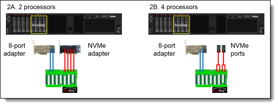 支持新的联想专利设计M.2适配器,方便操作系统启动功能。可用的M.2适配器支持RAID 1配置中的一个M.2驱动器或两个M.2驱动器,以实现引导驱动器的性能和可靠性。