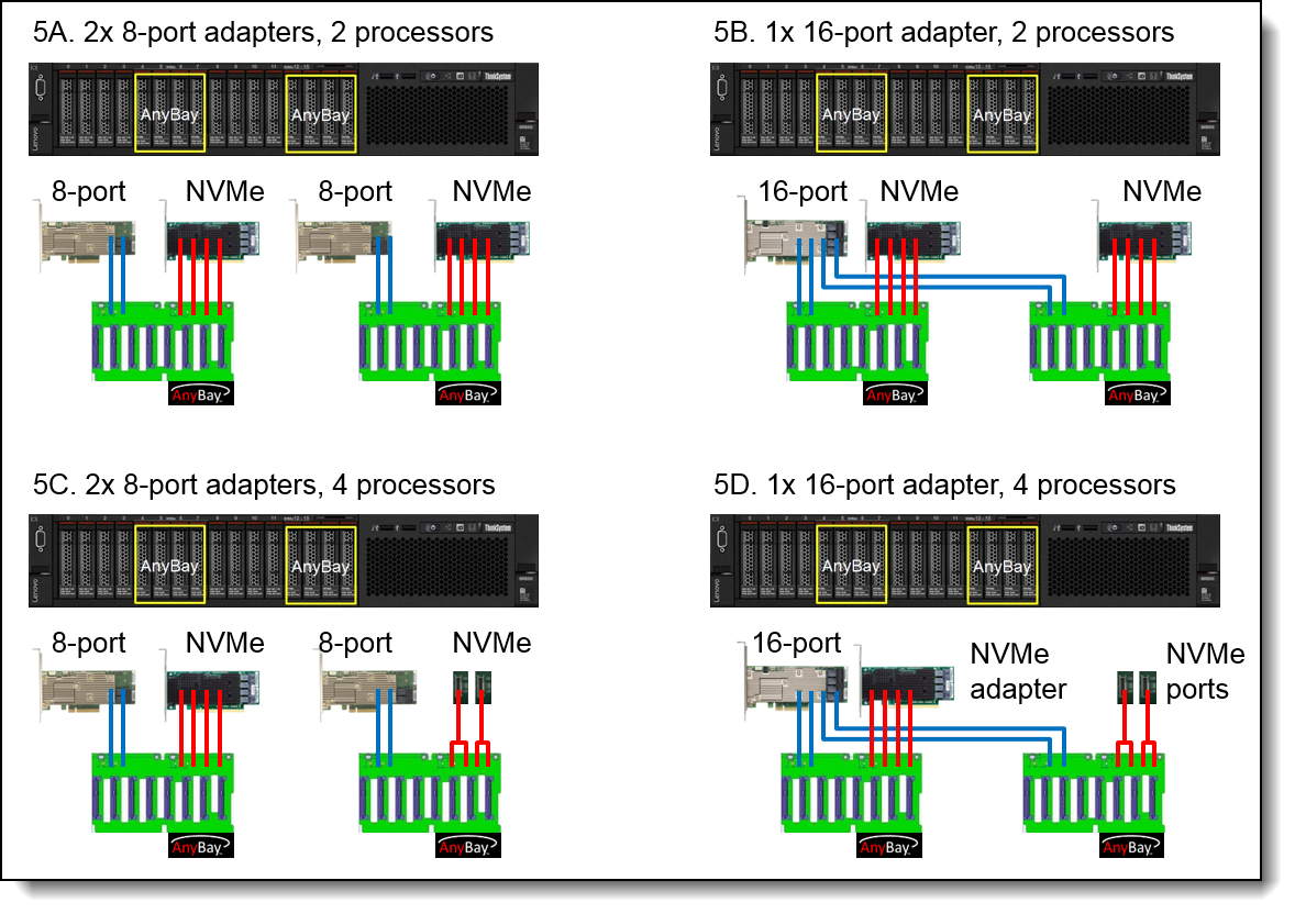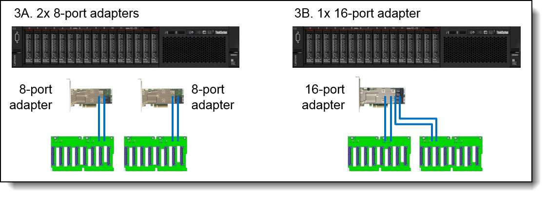 Broadcom的新型高速RAID控制器为驱动器背板提供12 Gb SAS连接。提供各种RAID适配器,缓存高达4 GB,并在单个控制器上支持16个驱动器。