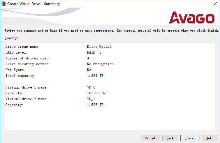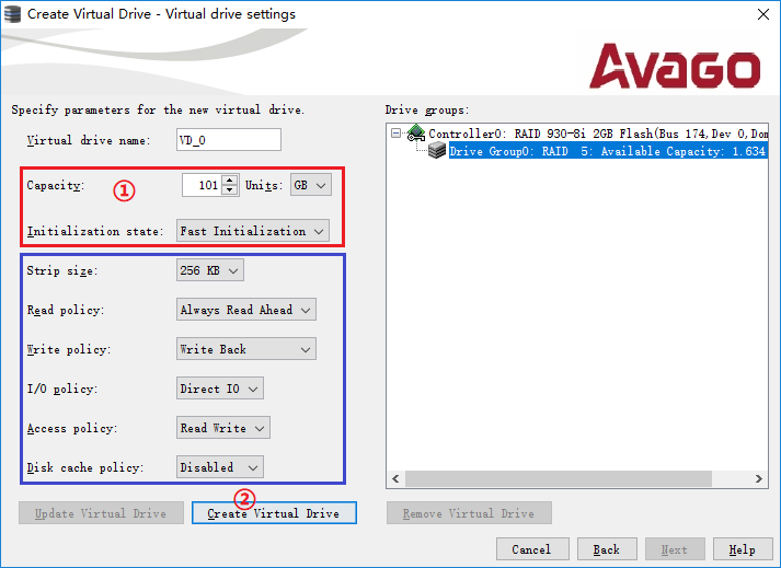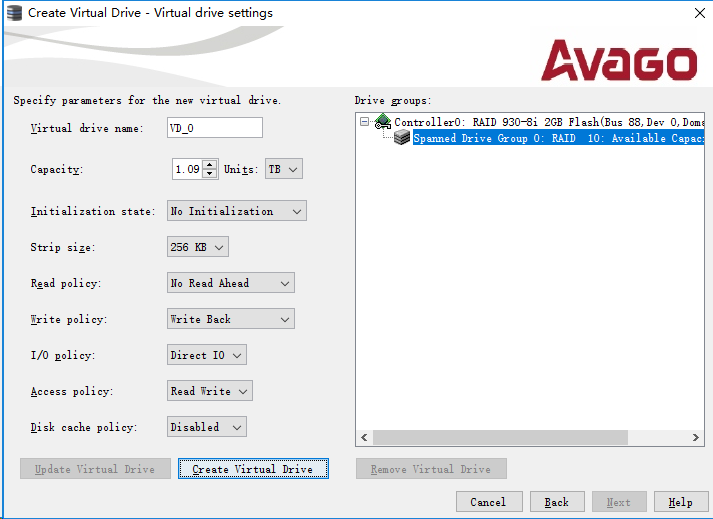 设置完毕后,点击"Create Virtual Drive"。