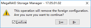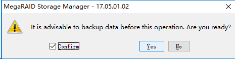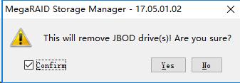 如果存在JBOD状态的硬盘,会先提示是否将JBOD状态的硬盘转换为Unconfigured Good状态。