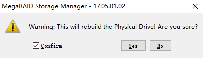 由JBOD切换到Unconfigured Good状态时会有确认提示,勾选""复选框后继续。