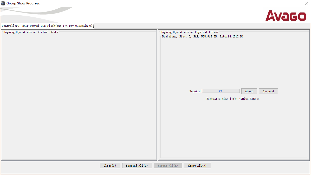 3、在扩容和迁移操作开始后,将不能中止操作,且耗时较长(取决于阵列容量及磁盘类型),请勿中途关机和断电。