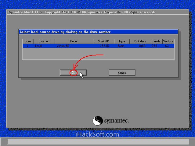 1.1、运行Ghost后,单击“OK”。