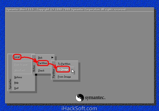 1.2、依次单击“Local”→“Partition”→“To Image”(意为:本地→分区→到镜像文件)