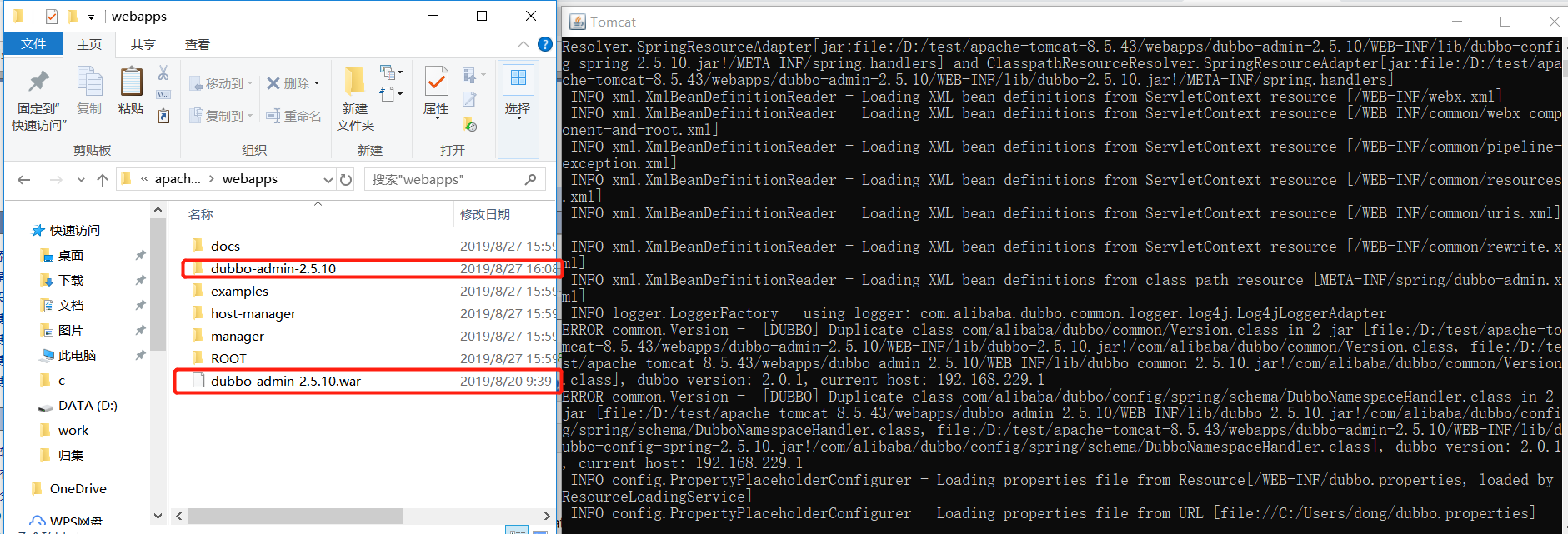 这里我准备了tomcat8.5.43与dubbo控制台的war包来做测试。
