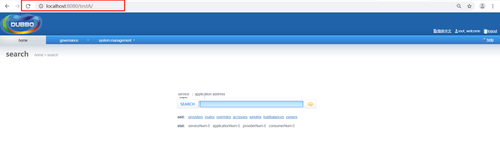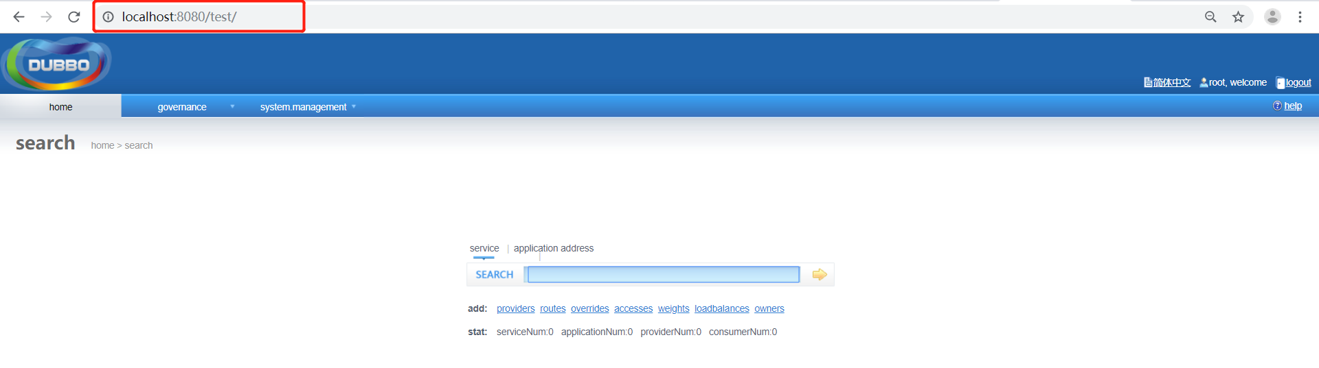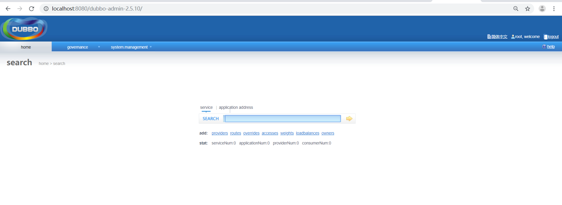 浏览器直接访问:localhost:8080/dubbo-admin-2.5.10,说明我们的war包部署成功!(访问路径为war包的名称)