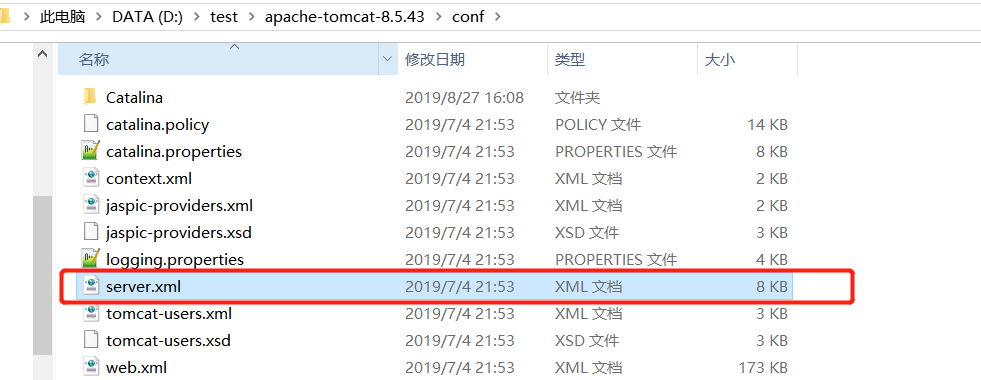 编辑server.xml