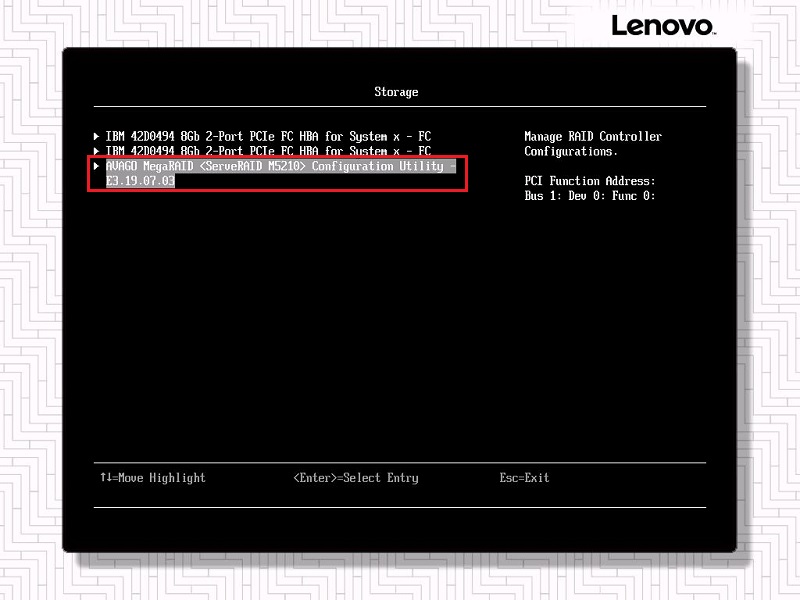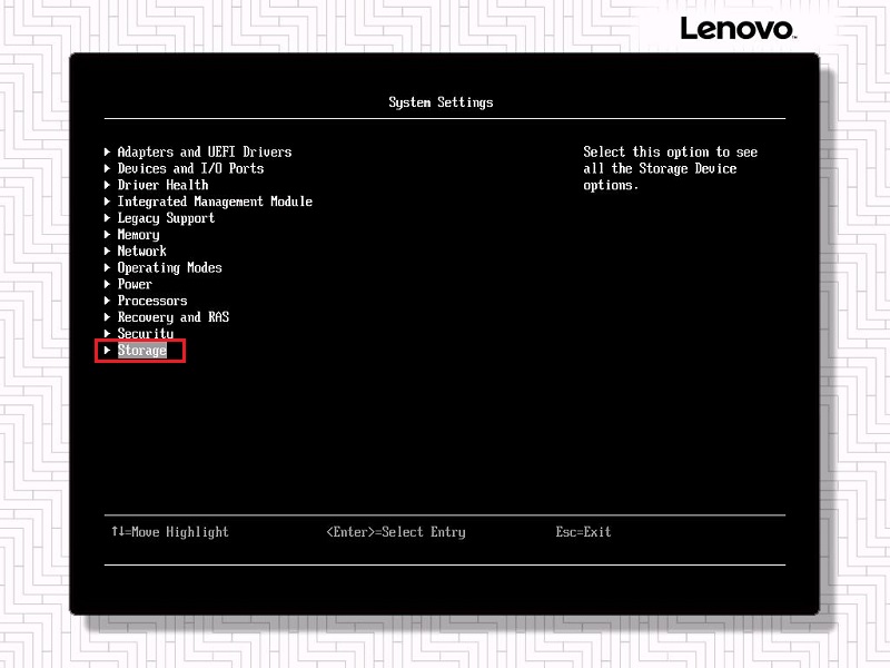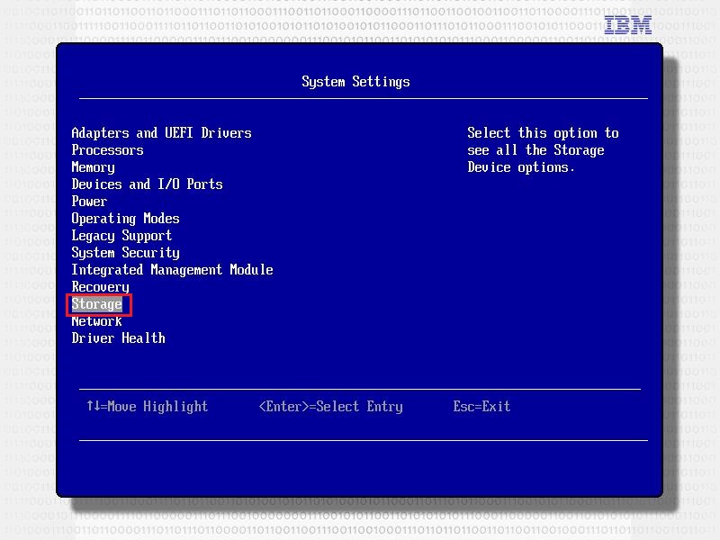 注意:部分旧型号IBM System x服务器没有UEFI HII接口,故此处没有Storage项目。
