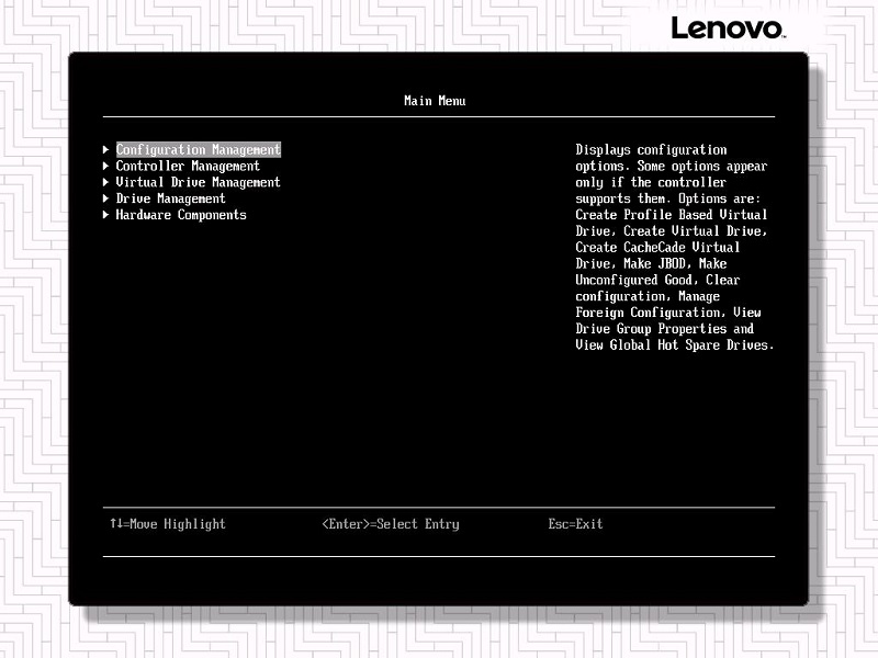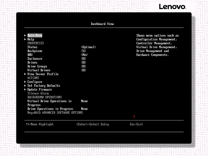 旧版本SAS RAID卡固件没有Dashboard界面,会直接进入Main Menu界面;
