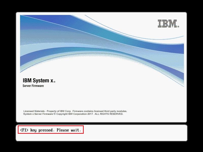启动服务器,在出现IBM System x logo的时候按F1键进入UEFI Setup界面。