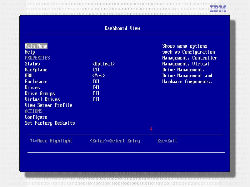 接下来即进入UEFI HII SAS RAID阵列配置界面,下图为Dashboard界面;
