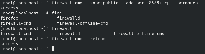 或者添加8888端口 # firewall-cmd --zone=public --add-port=8888/tcp --permanent