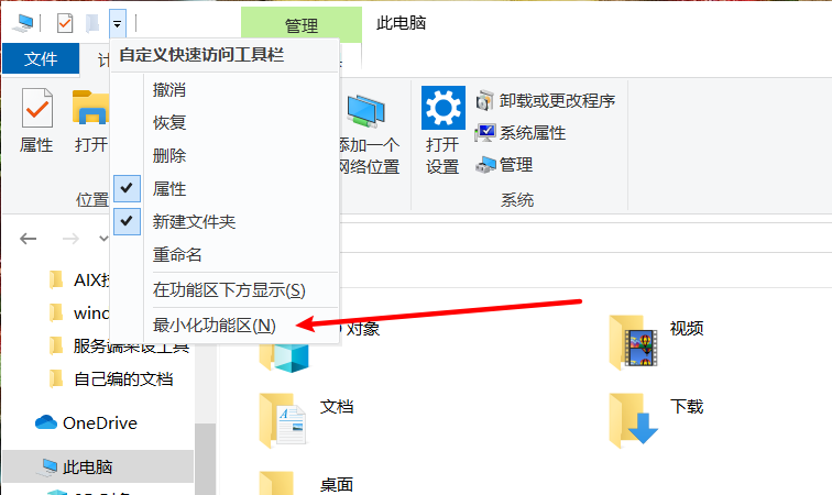 Windows文件管理器取消最小化功能区 admin 2020-08-24 09:40 506 人阅读 0 条评论 一、打开文件资源管理器、点击最小化功能区,即可将功能区固定在上方,反之亦然 本文地址:https://www.liuchunjie.top/?id=232 版权声明:本文为原创文章,版权归 admin 所有,欢迎分享本文,转载请保留出处! 点赞 分享: PREVIOUS:linux修改ssh端口 NEXT:linux修改hostname 文章导航