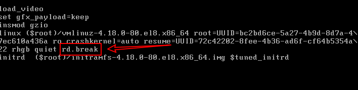 二、在启动内核项目的结尾添加rd.break 然后按ctrl+x运行;