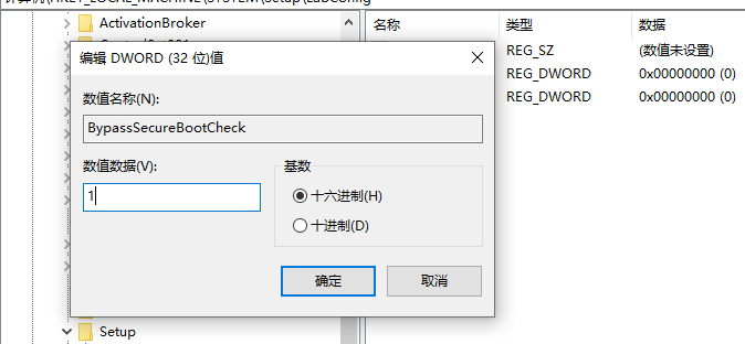 reg add "HKLM\SYSTEM\Setup\LabConfig" /v "BypassSecureBootCheck" /t REG_DWORD /d "1" /f