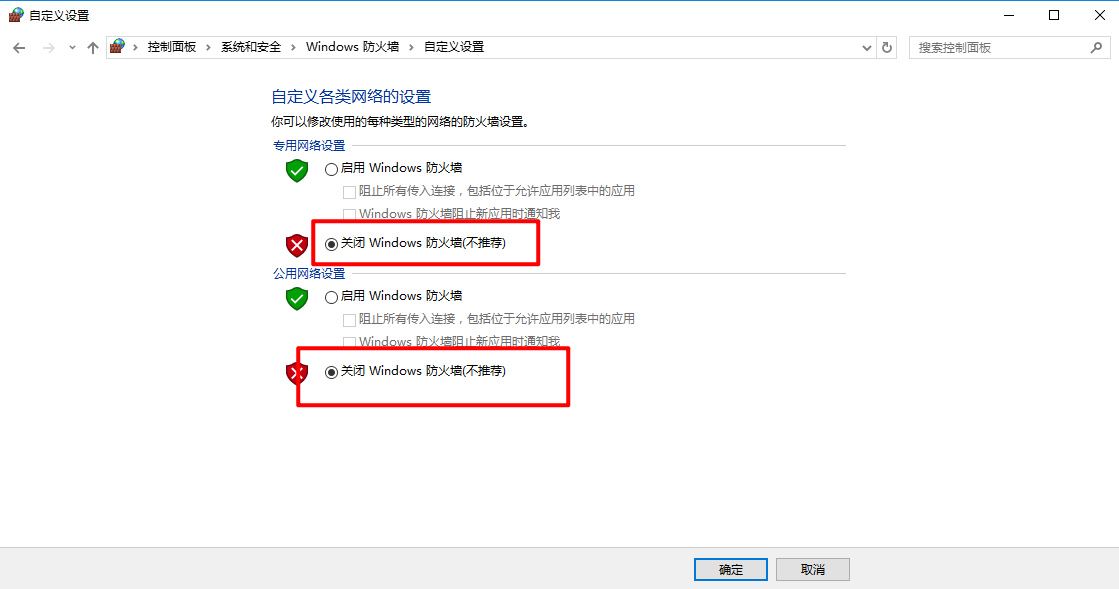双击控制面板,进入系统和安全\Windows 防火墙,选择启用和关闭windows防火墙