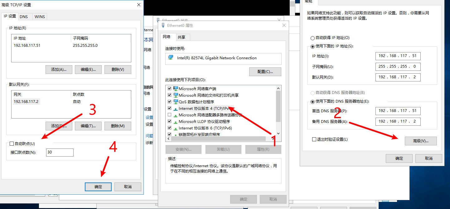修改网卡的跃点数来提高网卡的优先级,公共网卡设置跃点数30,专用网卡设置跃点数300