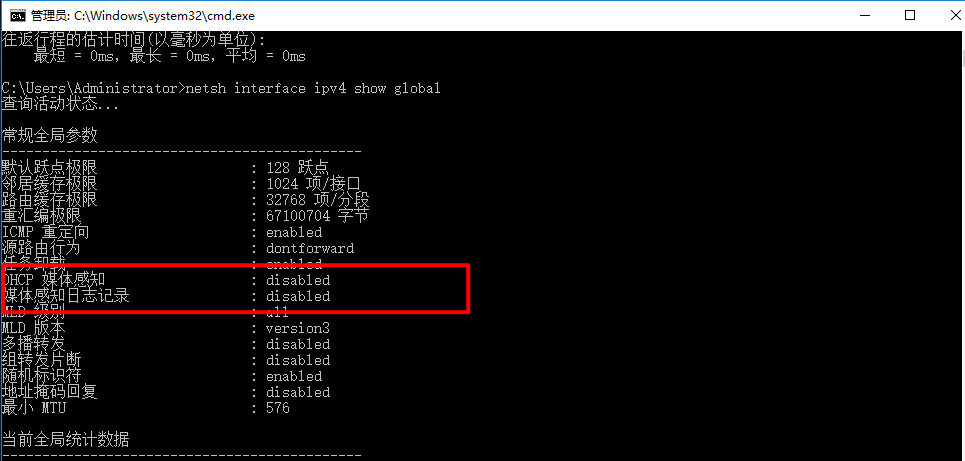C:\Users\Administrator> netsh interface ipv4 set global dhcpmediasense=disabled