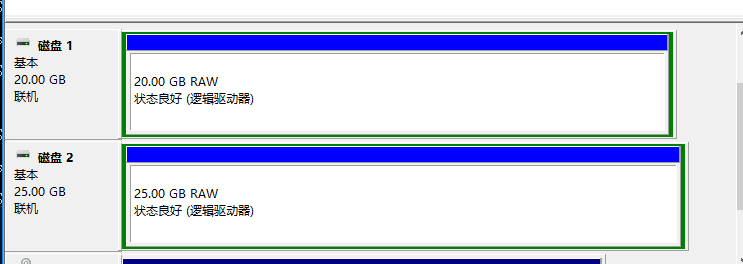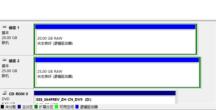 两台机器如上图,磁盘为RAW模式且无卷标即可