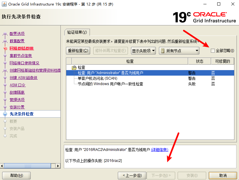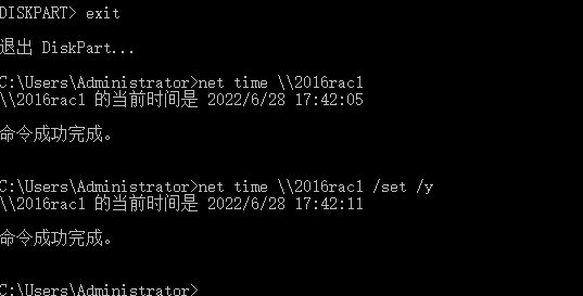在2016rac2上执行两边net use \\2016rac1\c$