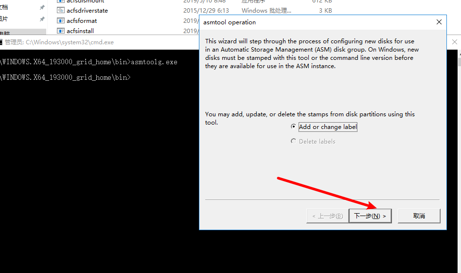 首先上传压缩包到服务器上并解压,运行C:\WINDOWS.X64_193000_grid_home\bin\目录下的asmtoolg