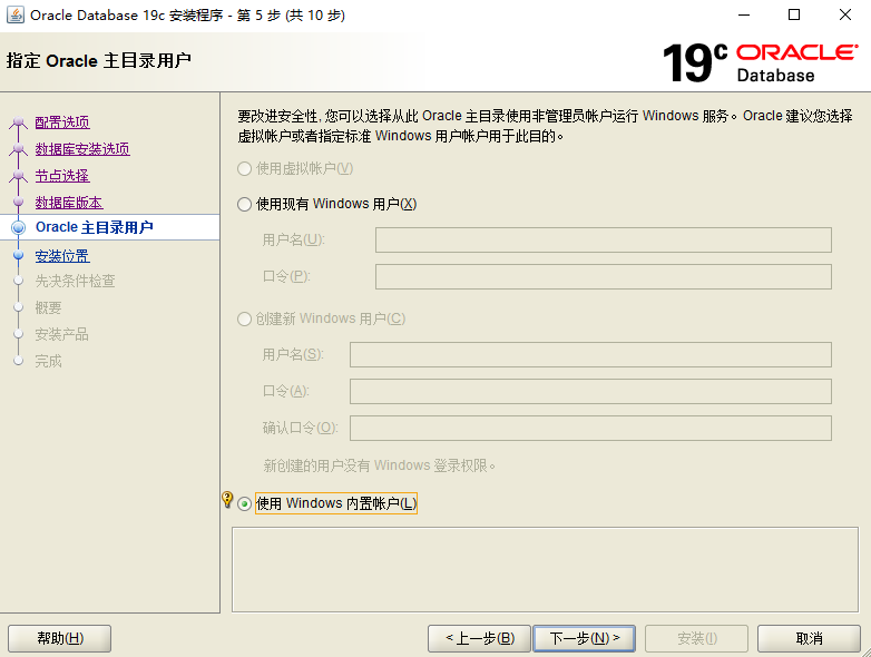 我这里选择的是使用内置账户