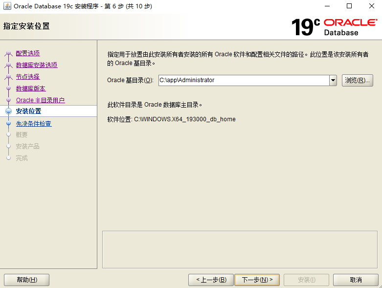 选择oracle基目录,我直接装在C盘根目录了