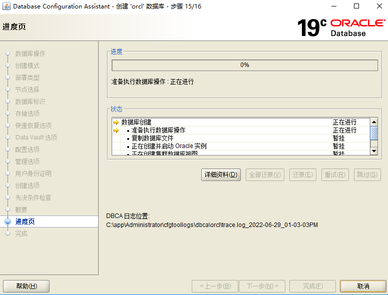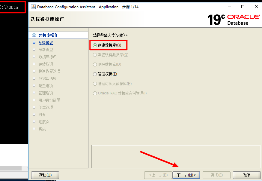五、执行dbca