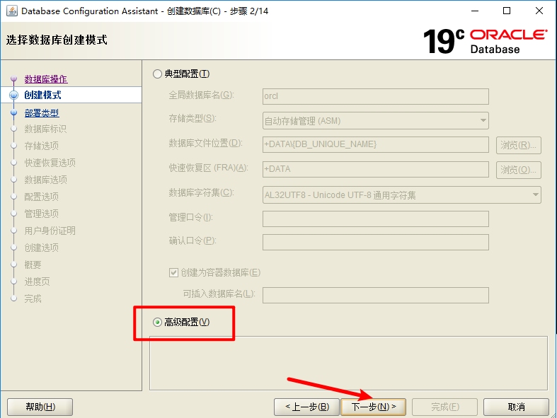 设置数据库名为orcl,容器数据库默认是选上的,我不需要,就关闭了