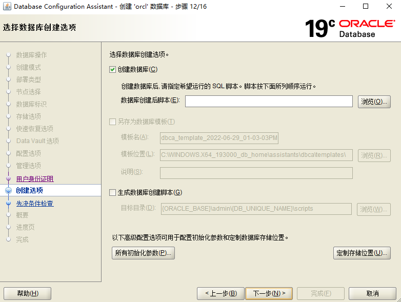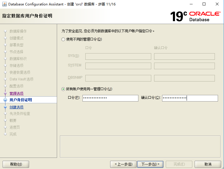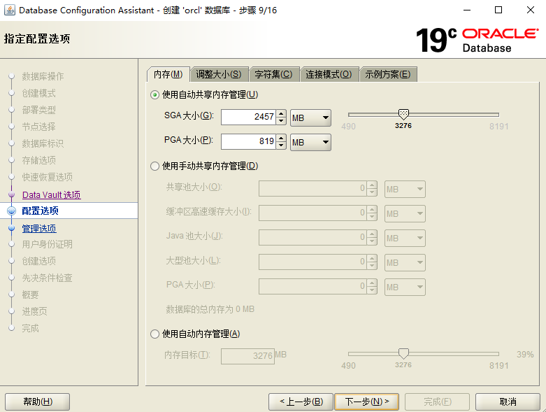 下面这一步的sga,和字符集之类的按需要更改,不然就保持默认