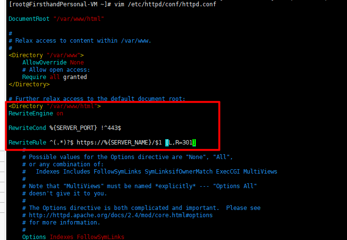 如果需要整站跳转,则在网站的配置文件的<Directory>标签内,键入以下内容: