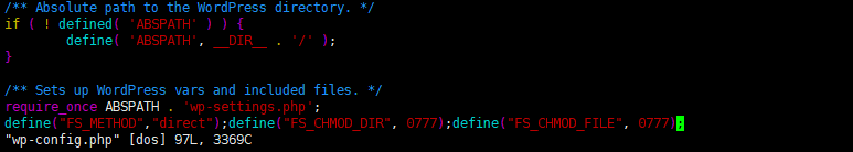 define("FS_METHOD","direct");define("FS_CHMOD_DIR", 0777);define("FS_CHMOD_FILE", 0777);添加到wp-config.php,并保存