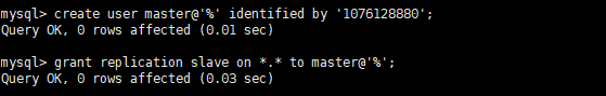 mysql> create user master@'%' identified by '1076128880';