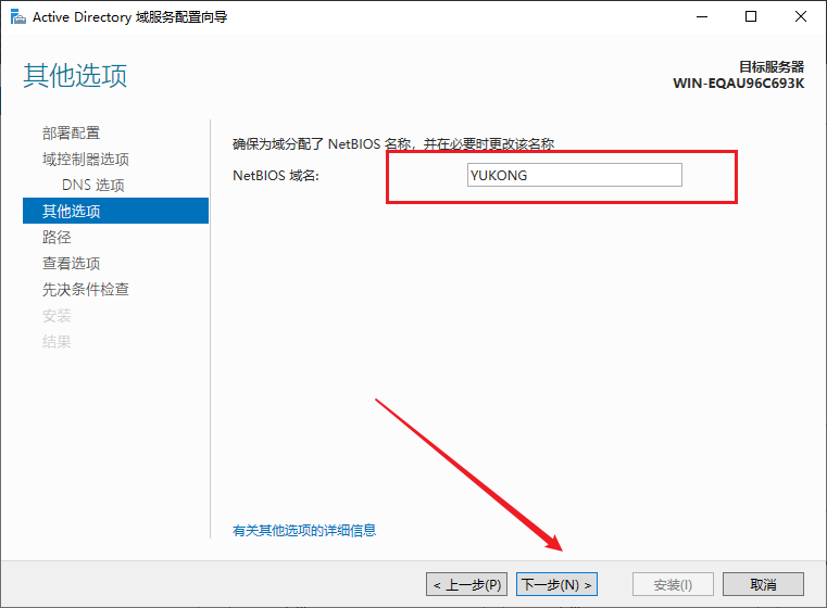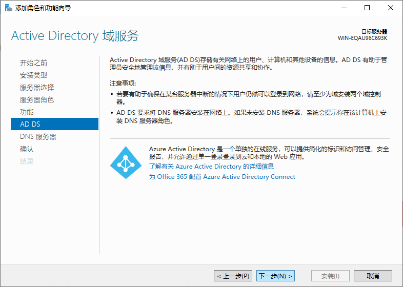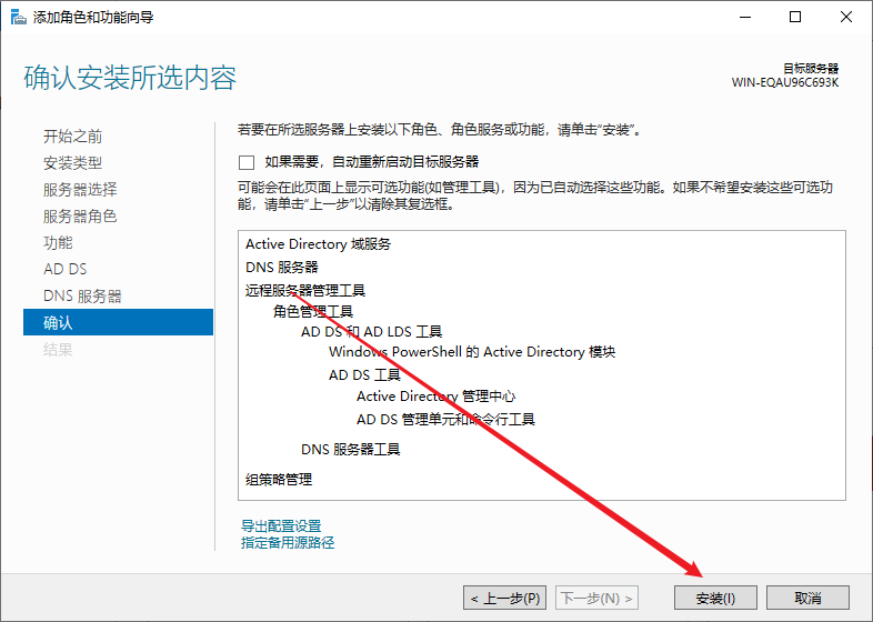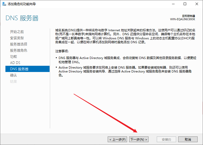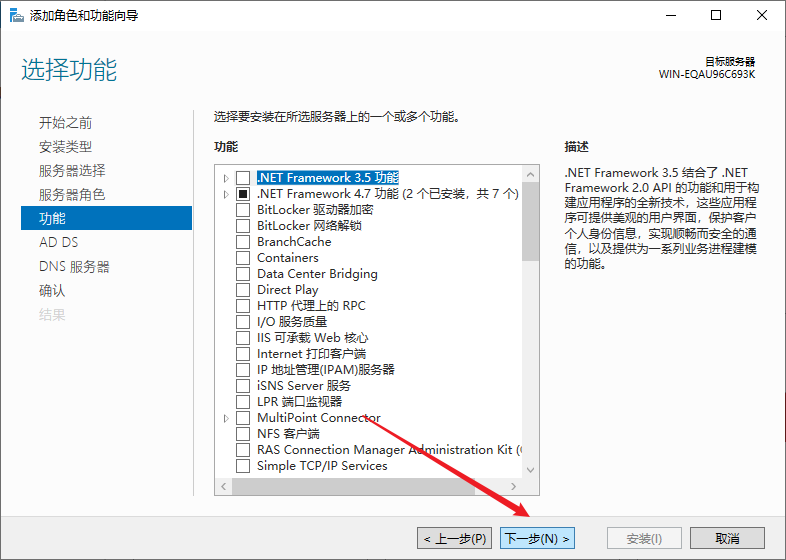 选择AD域服务和DNS服务,注意,安装前要配置服务器为静态IP地址,防火墙也要关闭,如需打开,等安装完再放行相关防火墙规则