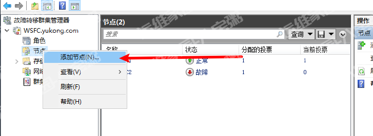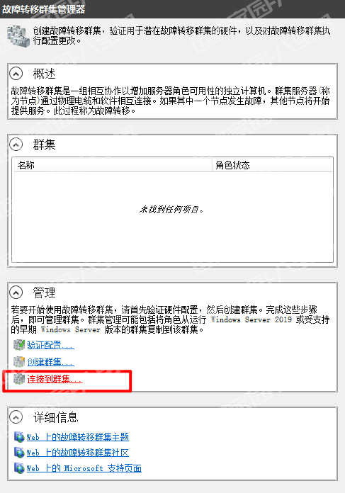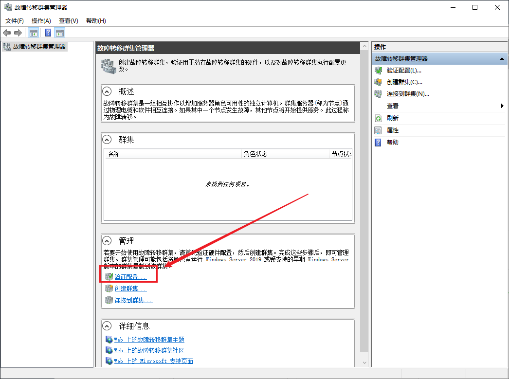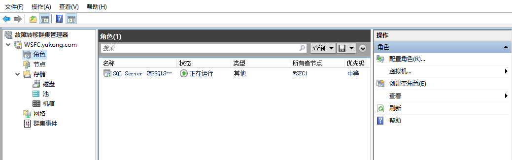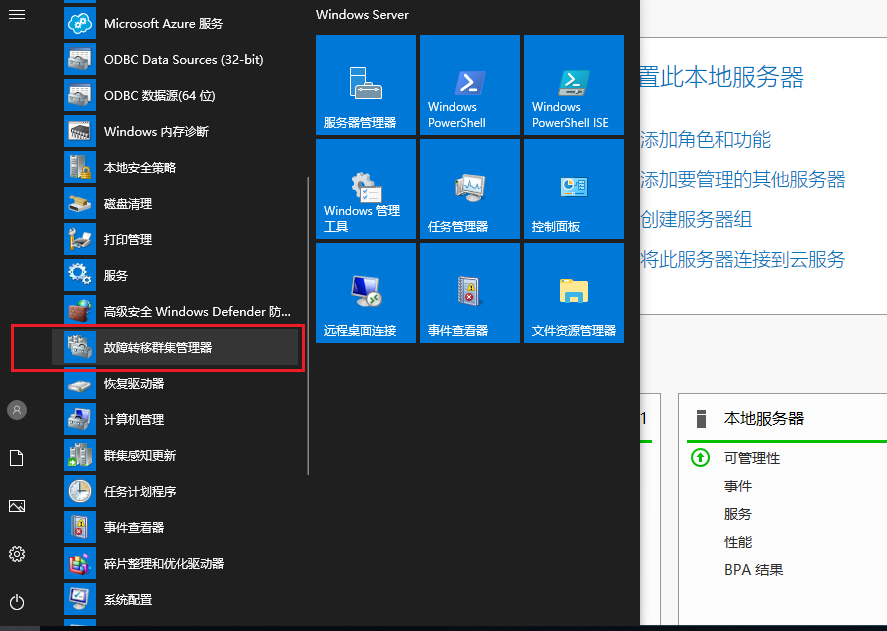 在控制面板\系统和安全\管理工具中打开故障转移群集管理器