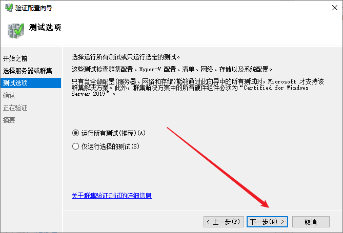 运行所有测试,然后点击下一步