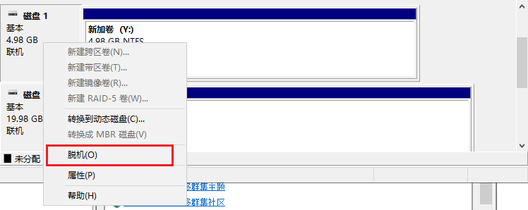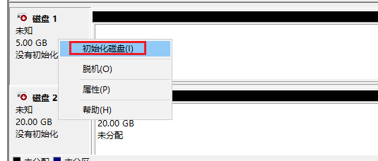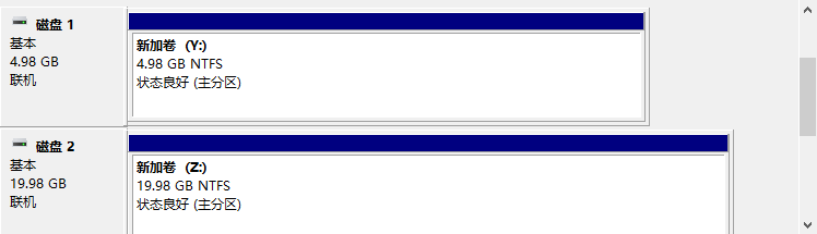 然后把两块硬盘联机并初始化