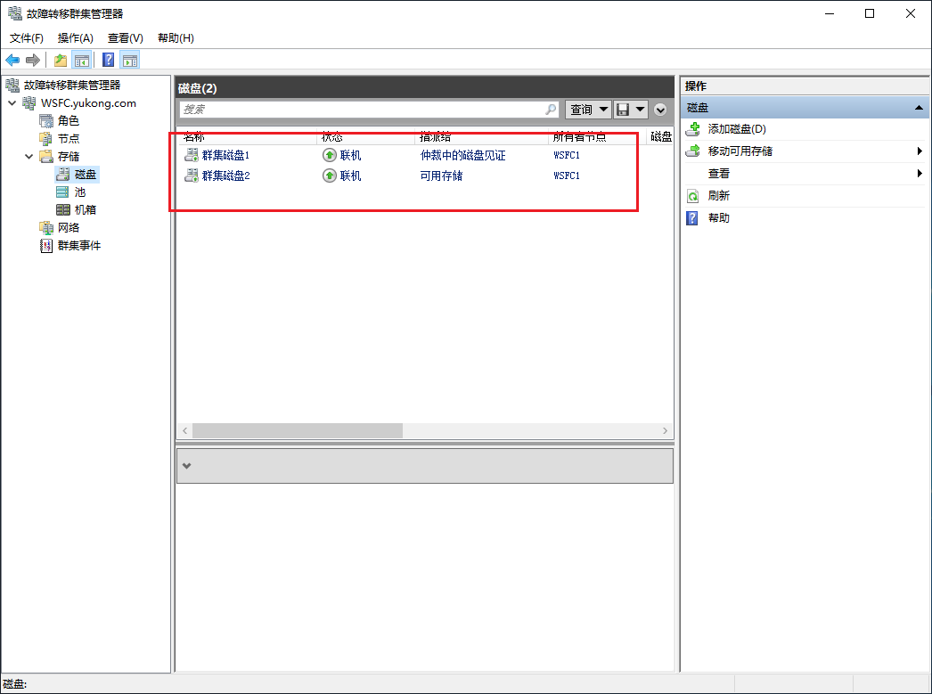 然后把wsfc1上的两块硬盘脱机