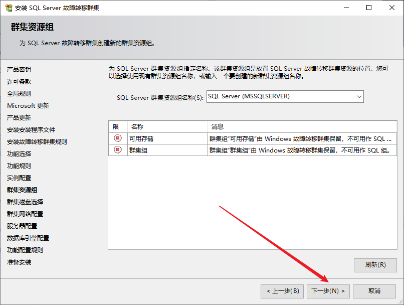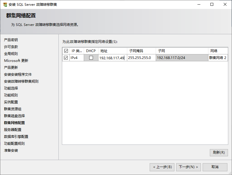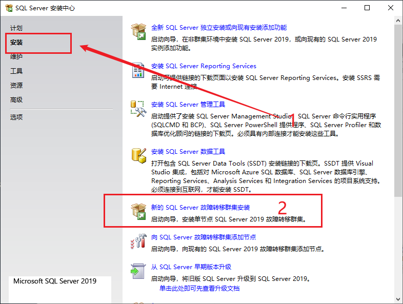 选择新的SQL server故障转移集群安装