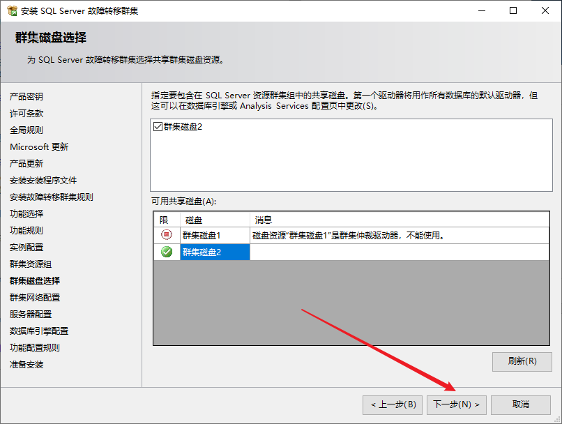 查看一下集群配置,如果有报错,就要看看之前的操作有没有什么问题,等会就要用下图的集群磁盘2作为数据盘
