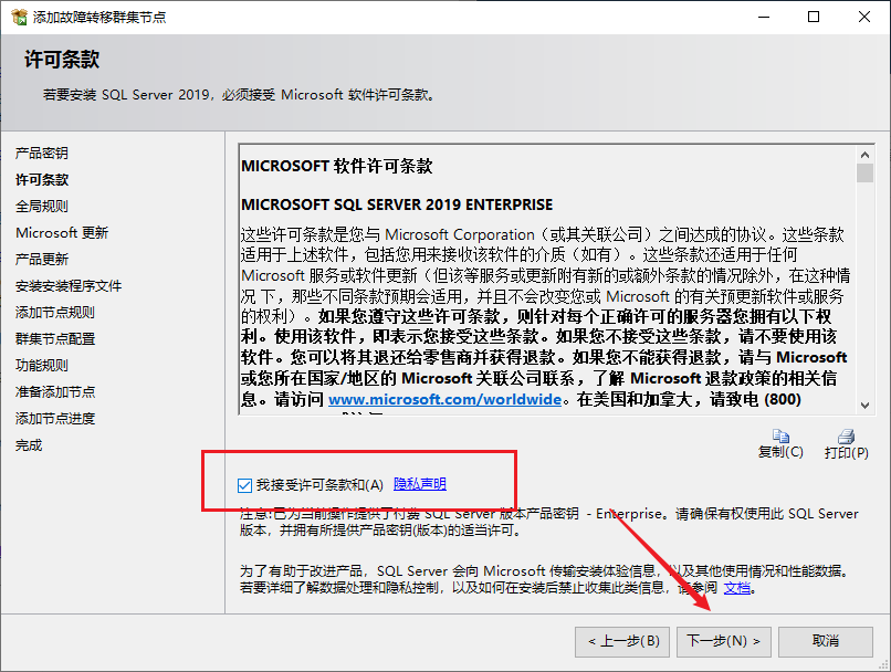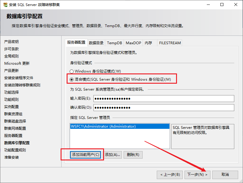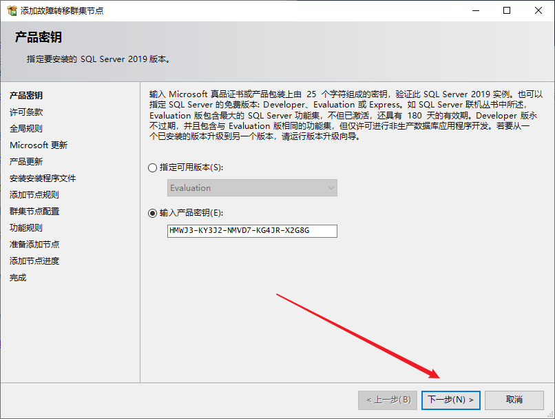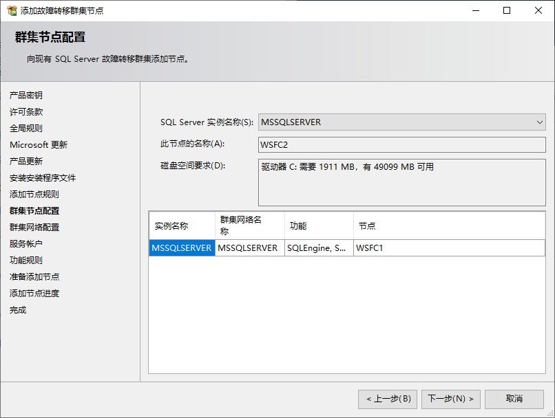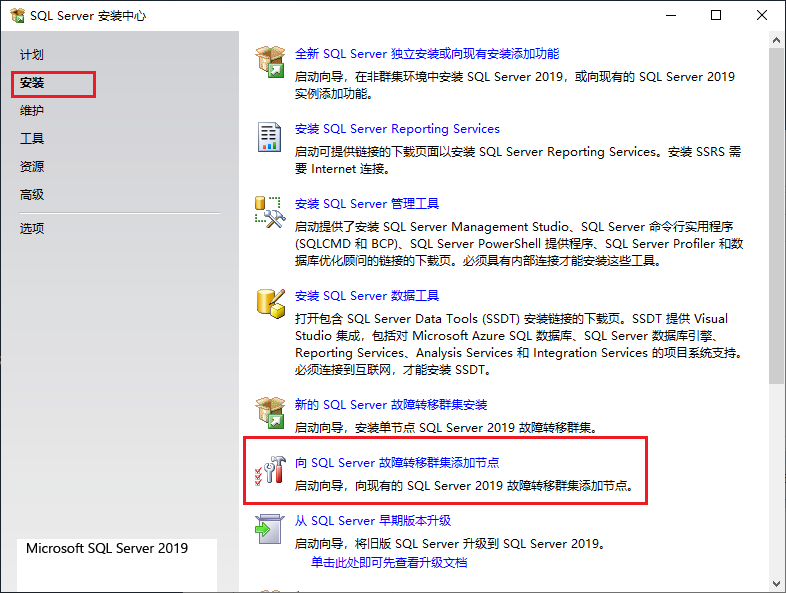 点击安装,选择向故障转移集群添加节点