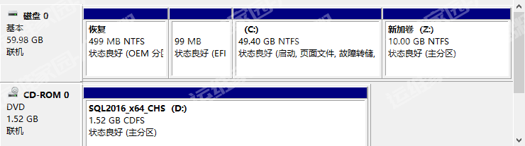 1、将本地磁盘分出个Z盘作为数据目录使用。盘符要和故障转移集群中的数据盘盘符一致