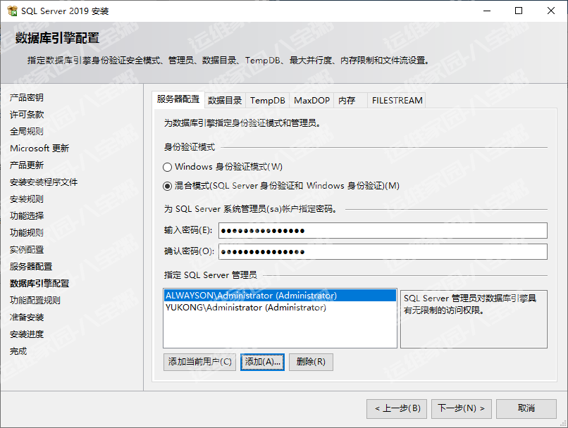 密码要设置个复杂点的,功能级别选择2016