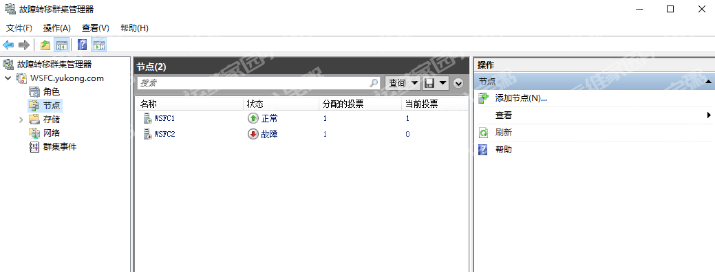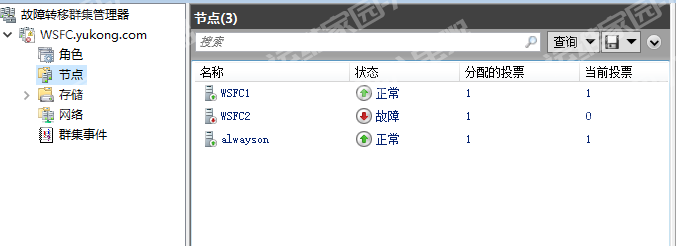 然后就可以看到之前创建的集群了,WSFC2故障是因为开的虚拟机太多,关掉了